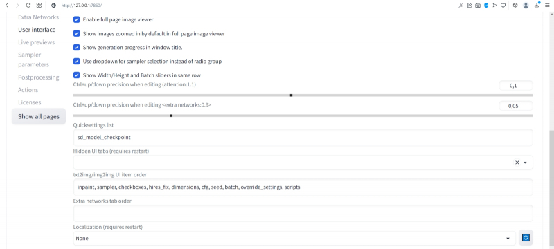 AUTOMATIC1111 é o nome do projeto de interface web que nos interessa para trabalhar com Stable Diffusion. A interface web é exatamente essa: ela é acessada por meio de um navegador; por padrão, apenas no PC local, mas se desejar, você pode abri-lo para usuários externos – no entanto, provavelmente terá que mexer nas configurações de firewall do seu roteador. Esta é provavelmente a interface mais popular para trabalhar com Stable Diffusion hoje: embora existam outros projetos semelhantes, a amplitude de controle sobre o processo de geração e os muitos plug-ins disponíveis tornam o AUTOMATIC1111 uma ótima ferramenta para experimentação.