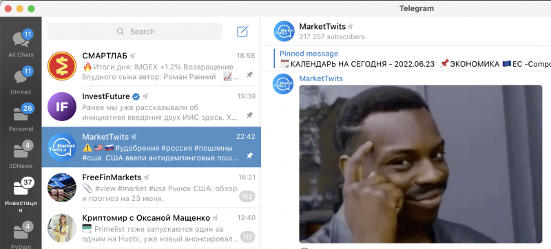 Dois anos após a aparição no Telegram da função de distribuir chats em pastas, ainda ouço com frequência de amigos que “as mensagens se perdem entre os anúncios dos canais” e “é impossível usar o carrinho, tudo cai no mesmo monte”. Parece que muitos usuários nem estão cientes da presença de pastas no Telegram e, claro, instantaneamente se afogam em uma enxurrada de notificações, adicionando apenas uma dúzia ou um canal e meio interessante (e há bastante deles no Telegram para todos os gostos, então uma dúzia e meia é bastante!). E isso não é surpreendente – o próprio aplicativo não avisa o usuário de forma alguma sobre a possibilidade de agrupar canais e bate-papos; portanto, para aproveitar essa oportunidade, você precisa mostrar alguma curiosidade, encontrar a seção apropriada nas configurações e lidar com algumas nuances.