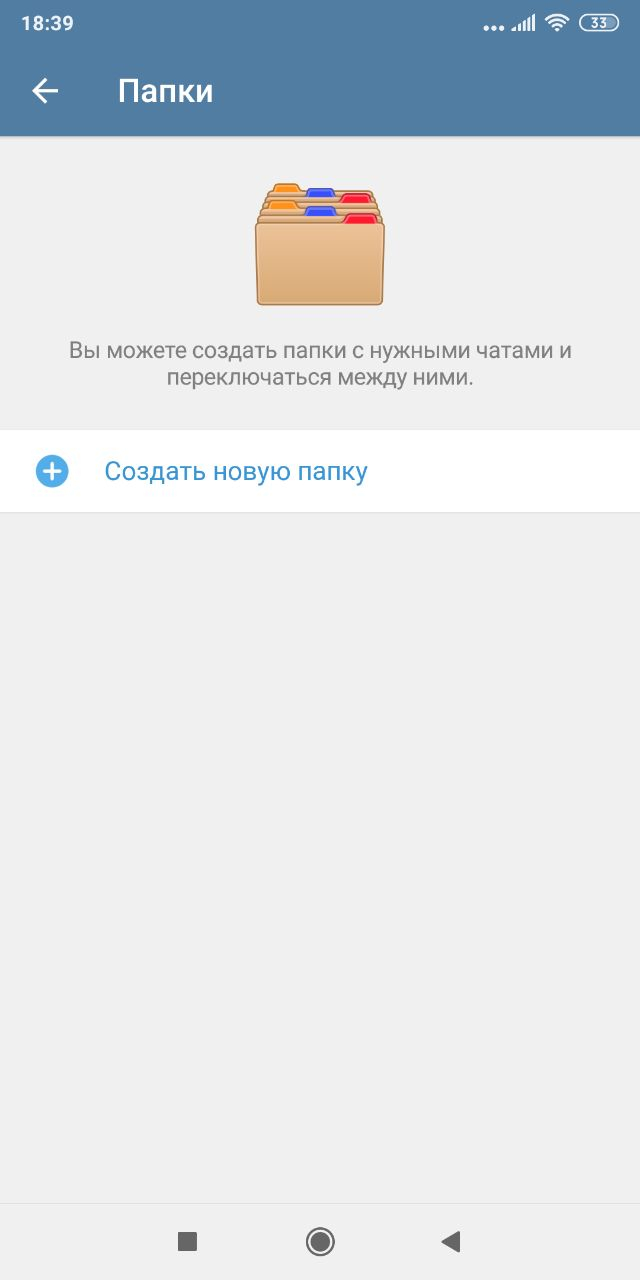 PS Tínhamos dez pastas configuradas manualmente, cinco pinos na parte superior de cada uma delas, cinco máscaras predefinidas pelos desenvolvedores para adição de grupos e três máscaras para filtragem do excesso. Não que todo usuário precise de tudo isso, mas se você já começou a personalizar o Telegram para si mesmo, vá até o fim no seu hobby. A única coisa que me incomodou foi o arquivamento dos chats. Nada no mundo é mais inútil do que arquivar chats.