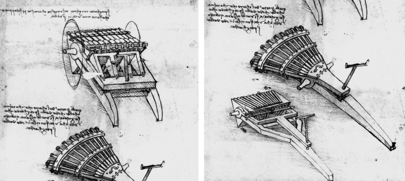 «Metralhadora Da Vinci – duas opções de design em uma folha (fonte: Wikimedia Commons)