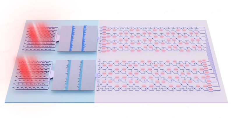 O microprocessador óptico Taichi usa circuitos fotônicos para receber sinais de informação/controle e processá-los (fonte: Universidade Tsinghua)