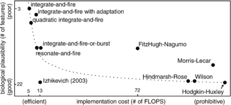 Vários modelos SNN em termos de preço de venda – plausibilidade biológica (fonte: PubMed)