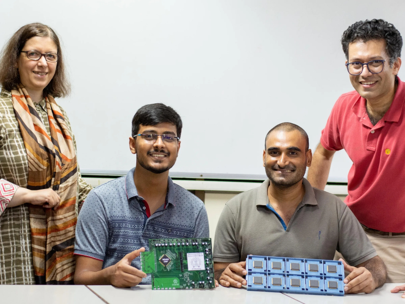 Um grupo de pesquisadores indianos posa com protótipos de engenharia de seus computadores neuromórficos BTBT (fonte: Instituto Indiano de Tecnologia, Bombaim)