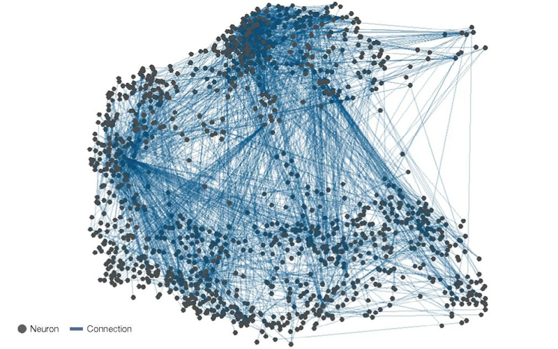 Só para entender a escala das tarefas que os criadores dos computadores neuromórficos enfrentam: o diagrama mostra um conectoma (mapa de interconexões) de neurônios na parte mais densa do sistema nervoso da Drosophila. Apenas moscas da fruta! (fonte: Física da Natureza)