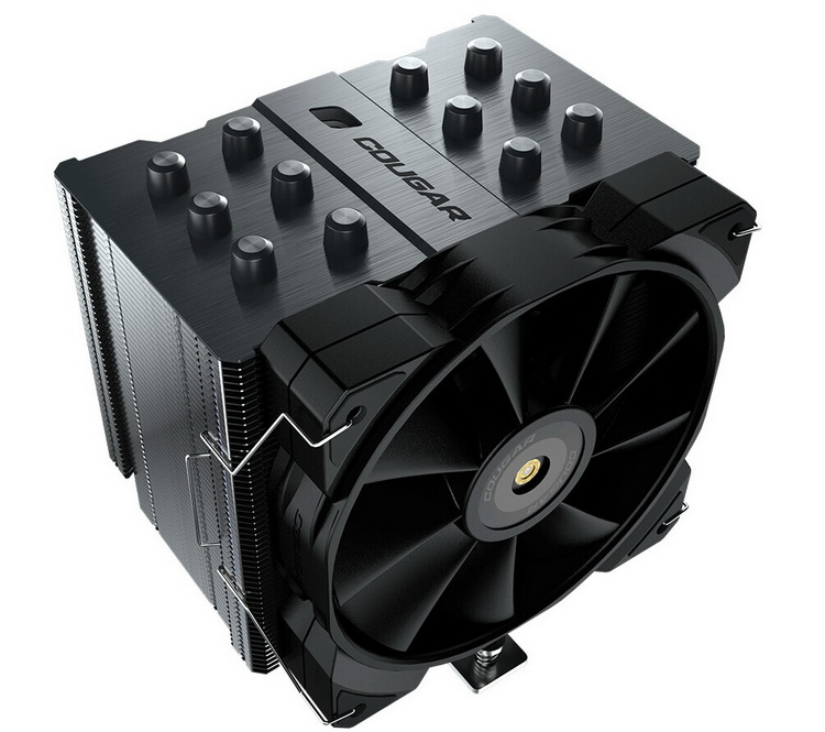 As dimensões do sistema de resfriamento são 135 × 110 × 160 mm, e o peso com o ventilador é 1,16 kg. A placa de contato de cobre folheado a níquel é conectada ao dissipador de calor por seis tubos de calor de cobre de 6 mm de diâmetro. O dissipador de calor de alumínio com 85 mm de espessura apresenta alta densidade e 50 aletas. É coberto por uma placa de alumínio escovado com o logotipo Cougar na parte superior.