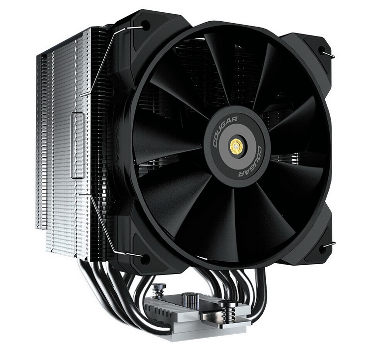 As dimensões do sistema de resfriamento são 135 × 110 × 160 mm, e o peso com o ventilador é 1,16 kg. A placa de contato de cobre folheado a níquel é conectada ao dissipador de calor por seis tubos de calor de cobre de 6 mm de diâmetro. O dissipador de calor de alumínio com 85 mm de espessura apresenta alta densidade e 50 aletas. É coberto por uma placa de alumínio escovado com o logotipo Cougar na parte superior.