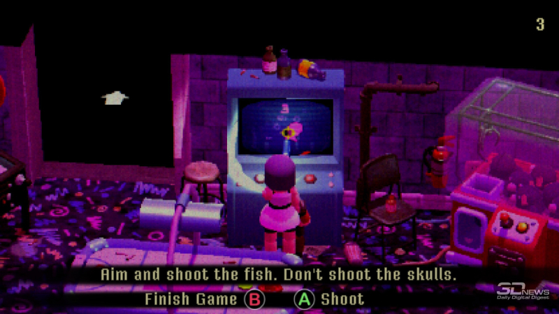 O jogo incentiva a exploração tranquila. É melhor notar o inimigo antes que ele perceba você. E então você precisa decidir se deseja contornar o perigo ou se livrar dele para tornar o local seguro. Você pode tentar atirar no monstro de longe, mas há um porém: quanto maior a distância entre você e o alvo, menos dano o tiro causa e será mais difícil mirar. Apesar da perspectiva, você ainda precisa mirar manualmente, inclusive verificando a altura. Para economizar munição valiosa, é mais lucrativo deixar o inimigo se aproximar. Por outro lado, o risco também aumenta. Mara ainda é uma garota frágil, e literalmente cinco golpes são suficientes para chegar ao último ponto de salvamento – eles são apenas manuais aqui (sem pontos de verificação automáticos) e estão disponíveis apenas em salas especialmente designadas. Obrigado por permitir economizar sem gastar itens especiais, como no primeiro Resident Evil.