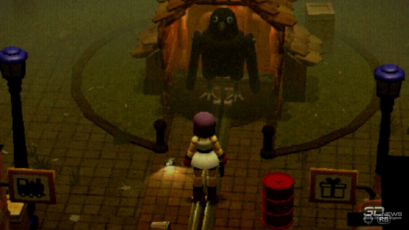 A princípio parece que não há perigo. Mas o jovem ferido, resmungando algo sobre monstros, rapidamente traz a heroína de volta à razão. Não há necessidade de relaxar – não foi à toa que ela levou consigo sua arma de serviço. Em breve também encontraremos moradores locais. Apesar da estilização do início da era do PlayStation 1, quando os modelos dos personagens eram compostos de formas geométricas primitivas, os artistas conseguiram retratar imagens únicas e memoráveis de monstros. “Crow Country” é habitado por essas aberrações, desde vermes ambulantes assustadores até humanóides grotescos com membros finos e alongados.