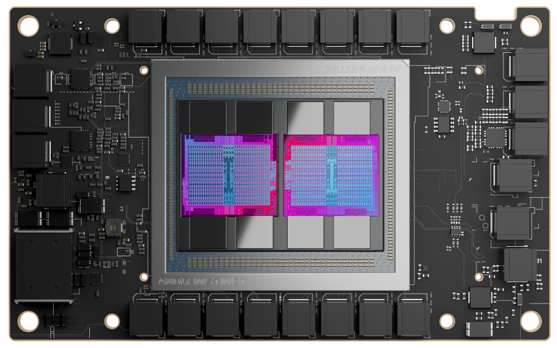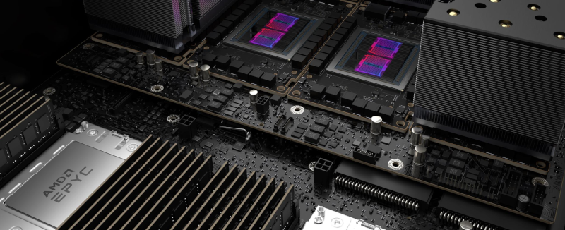 No centro de cada nó está uma versão especial do AMD EPYC 7A53. Os 64 núcleos (com SMT2) são divididos em quatro domínios NUMA servidos por controladores de memória separados. Oito canais DDR4 (total de 512 GB por nó) fornecem 205 GB/s de largura de banda. Existem apenas quatro aceleradores no sistema, mas esses são os mais recentes chips AMD Instinct MI250X, então eles são visíveis para o sistema como oito GPUs separadas.