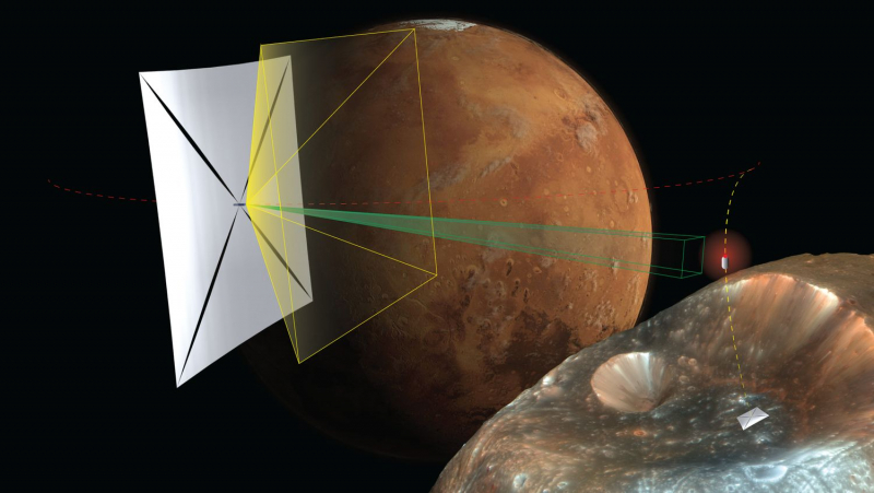 O conceito de usar cubesats para entregar amostras de solo de Phobos ou Deimos, proposto pela California Polytechnic State University. O primeiro cubesat pousa no satélite (a operação é mais como atracar uma espaçonave), coleta amostras e decola da superfície, o segundo observa da órbita, intercepta o primeiro, pega o contêiner e voa para a Terra. Todas as operações dinâmicas são realizadas por propulsores ou velas solares.