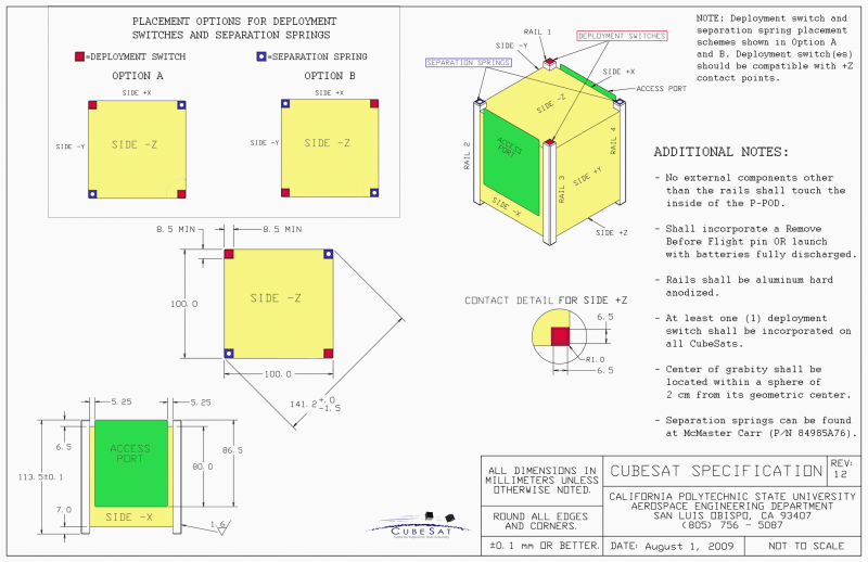 Especificação de projeto para um cubesat de “unidade única” (1U). Fonte: https://commons.wikimedia.org/