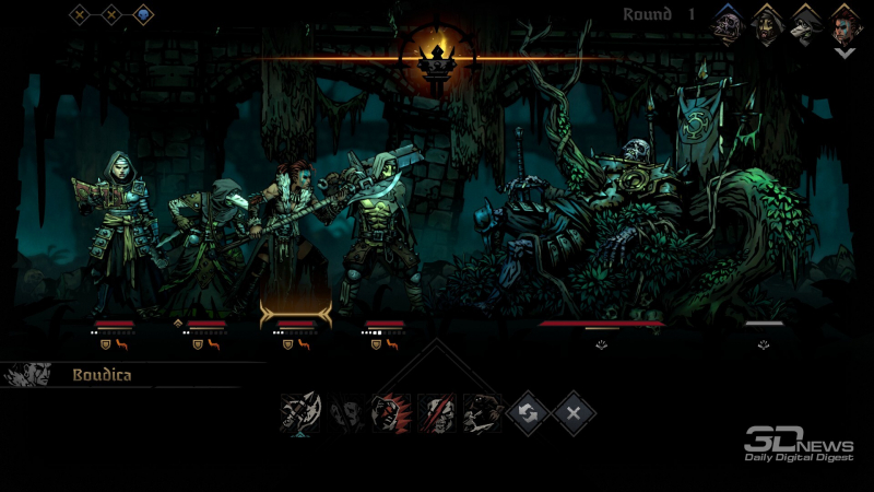 Darkest Dungeon 2 é direto como uma vara – basta escolher um capítulo e cavalgar exatamente nos mesmos locais, tentando chegar à montanha. Sim, a ordem dos níveis muda, assim como a localização dos pontos de interesse neles, mas se for concluído pelo menos uma vez, não poderá mais surpreender. Com o tempo, você entende onde estão os chefes intermediários mais fracos (sem derrotar pelo menos um deles, eles não poderão ir para o monstro principal do capítulo) e onde é melhor agir com mais cuidado – e isso é tudo, além as corridas se transformam em um tédio monótono com a repetição da mesma coisa por uma hora, se azar na luta final.