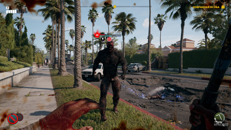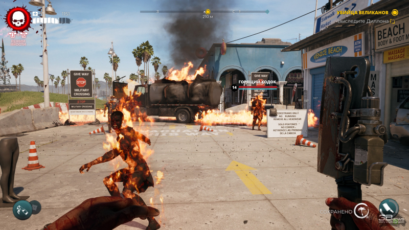 É engraçado que, com a ajuda de todos esses zumbis, os autores também estejam tentando desvendar o universo. Aqui você pode encontrar caminhantes que transportam água – infectados, que carregam bebedouros com água mineral nas costas. Existem também ex-entregas de comida com enormes sacolas angulares – quando você as derrota, bebidas energéticas e barras de proteína caem das sacolas para restaurar a saúde. Também existem ligações de certos tipos de zumbis aos locais. Todos os tipos de vomitadores obviamente vivem nos esgotos e cuspem ácido, e quando você chega a Venice Beach, um dos personagens diz que o apocalipse na cidade chegou no meio do “campeonato de atletas” – é por isso que existem tantos zumbis grandes e fortes correndo pela praia.