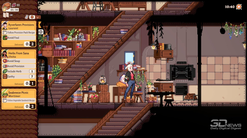 O maior problema será com os clientes – eles obviamente também não são mostrados no mapa, então você terá que se lembrar da localização deles ou correr de canto a canto procurando por eles. Não é assustador quando você anota o pedido, conclui imediatamente e volta para o cliente, mas se você deixou a missão para mais tarde ou mesmo voltou ao jogo alguns dias depois, isso não dará nenhuma dica de quem e onde está esperando para você. Mas as receitas, felizmente, são quase sempre mais ou menos óbvias – muito raramente você olha para uma tarefa e não entende o que elas querem de você. E mesmo que você cozinhe algo errado, não precisa jogar o prato no lixo, você pode vendê-lo na hora.