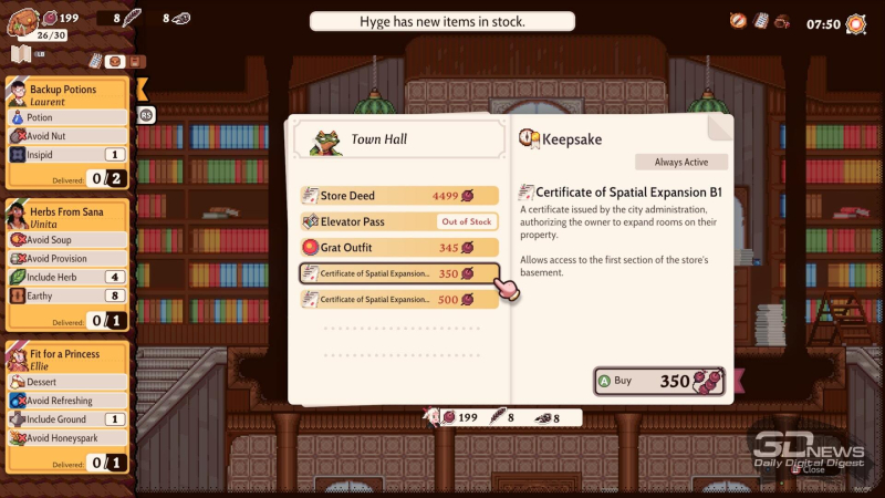 Com o tempo, você se preocupa cada vez menos com dinheiro. Se você costuma experimentar e realizar tarefas com receitas prescritas, pode preparar rapidamente diversos pratos e vendê-los diretamente na loja – para isso, abra a janela próxima à entrada e adicione itens desnecessários ao cardápio. É especialmente fácil fazer isso quando a loja tem uma panela, uma mesa, um forno e muito mais – todos os tipos de tortas, obviamente, não podem ser preparadas sem forno, por mais que você queira. E mais tarde você também aprenderá a preparar poções – afinal, o jogo é sobre uma bruxa.
