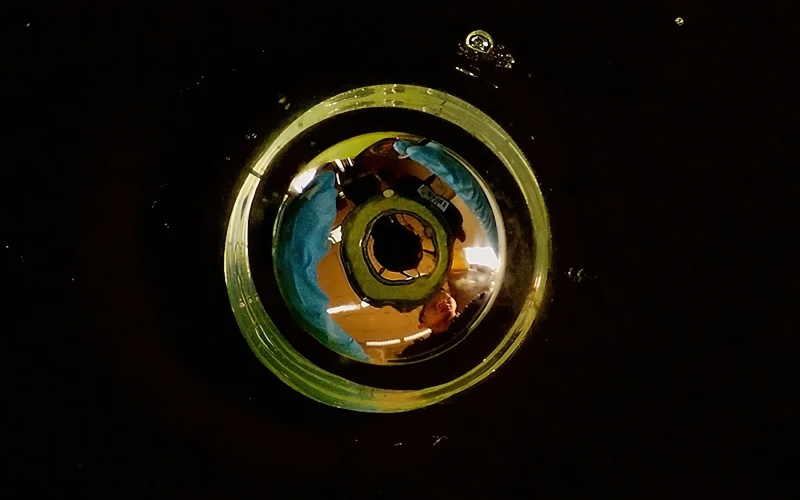 Esta foto pitoresca captura o momento em que a superfície de uma gota de GLM passa de um estado oxidado para um estado reduzido (fonte: Universidade de Tsinghua)