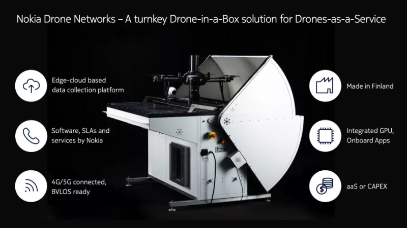 A Nokia anunciou que cada kit drone-in-a-box inclui o próprio drone de nível industrial, uma estação de acoplamento, uma estação de controle de solo, um conjunto de câmeras de vídeo e infravermelhas, software e componentes para manutenção do equipamento. A solução suporta conectividade 4G/5G para redes públicas e privadas. Os UAVs são certificados para uso além da linha de visão do operador (BVLOS). Toda a frota de drones será controlada a partir de um único centro de controle remoto. Provavelmente, tudo isto não será barato – o preço do projecto não foi divulgado e não houve resposta aos pedidos dos jornalistas.