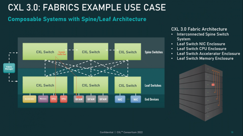 E não apenas expandindo: na versão 3.0, o novo padrão recebeu suporte para 64 GT/s, sem aumentar o atraso. O que não é surpreendente, pois é baseado no padrão PCIe 6.0. Mas os principais esforços dos desenvolvedores se concentraram no desenvolvimento das ideias de desagregação de recursos e na criação de uma infraestrutura composta.