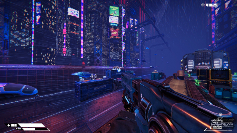 O alcance visual também brinca de todas as maneiras possíveis com a atmosfera de fantásticos filmes de ação do salão de vídeo. Em primeiro lugar, claro, vem-me à mente Blade Runner, com arranha-céus perdidos nas nuvens, uma eterna noite chuvosa e um oceano de néon. Mas com notas de sabor oriental. A história nos levará por vários locais, desde as ruas canônicas da metrópole e cassinos até os palácios celestiais da elite e naves espaciais. E sim, o nível no espaço no meio da batalha entre humanidade e monstros é mais legal do que em Doom Eternal.