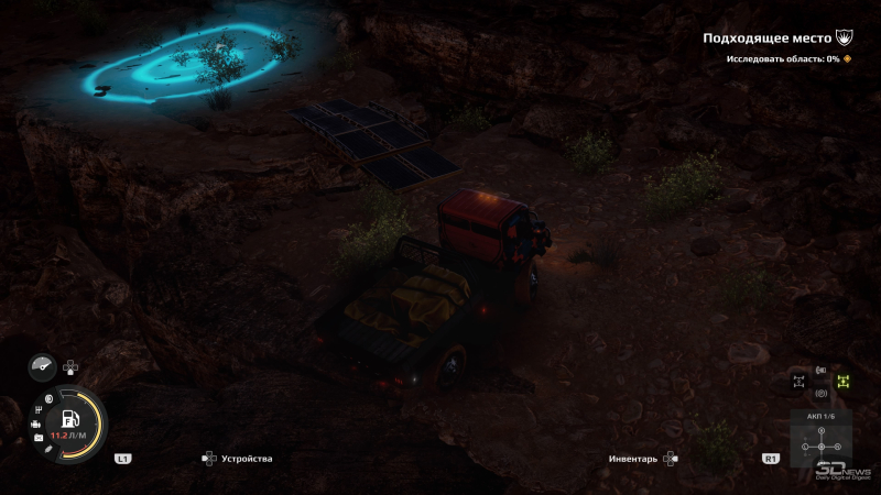 Existem outras esquisitices e deficiências no jogo, algumas das quais migraram da parte anterior para cá. O mapa, por exemplo, não se tornou mais conveniente – em particular, ao abri-lo, em metade dos casos o cursor começa a ir para algum lugar distante, mostrando um objeto ou tarefa selecionado aleatoriamente. E quando você está se preparando para a próxima expedição, você não sabe exatamente onde ela começa e por qual posto avançado é melhor começar. Se algo acontecer, você pode se teletransportar gratuitamente para um local mais conveniente (aqui isso é chamado de evacuação), mas ainda assim é perda de tempo. Embora isso não seja nada comparado a situações em que, ao abrir o menu do armazém, o jogo congela por dez segundos – embora às vezes trinta; no SnowRunner pensei que isso se devia ao hardware fraco do PS4, e agora a mesma coisa se repete no novo jogo do PS5. Sem mencionar os bugs gráficos – as texturas do solo tornam-se repentinamente ensaboadas e depois desaparecem completamente, tornando difícil entender em que superfície você está dirigindo.