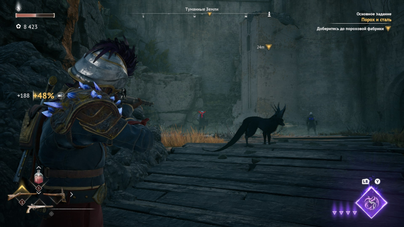 O único problema é que Flintlock não é o melhor jogo para tal mecânica. O sistema de combate é bom, mas não tão conveniente como em muitos soulslices. Aqui você costuma pegar uma bala do nada – tira um pouco de saúde, mas o multiplicador é zerado e sempre causa emoções desagradáveis. Além disso, você não pode interromper animações, e é por isso que você é constantemente punido por tentar usar diferentes técnicas – você não pode rolar ou desviar um ataque até que a ação anterior seja concluída. Isso pareceria apropriado em outro jogo, mas aqui não se encaixa no sistema multiplicador de reputação – você deseja aumentá-lo com ações diferentes, mas às vezes Flintlock parece ser contra.