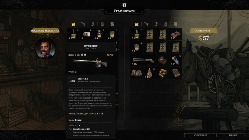No arsenal de Hard West 2, existem muitas armas sofisticadas. Por exemplo, uma pistola que atira como uma espingarda ou, digamos, um protótipo de metralhadora