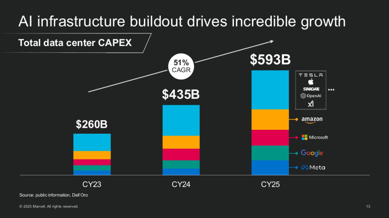 No AI Investor Day 2025, o CEO Matt Murphy destacou o papel crescente da empresa no suporte à infraestrutura de IA, destacando dois desenvolvimentos importantes que moldam o mercado: a ascensão de novos fornecedores de infraestrutura de IA fora dos quatro principais hiperescaladores tradicionais e a rápida ascensão dos componentes XPU Attach como uma nova categoria significativa de semicondutores personalizados. Murphy observou que essas tendências estão contribuindo para um mercado total endereçável muito maior e mais diversificado do que o projetado anteriormente.