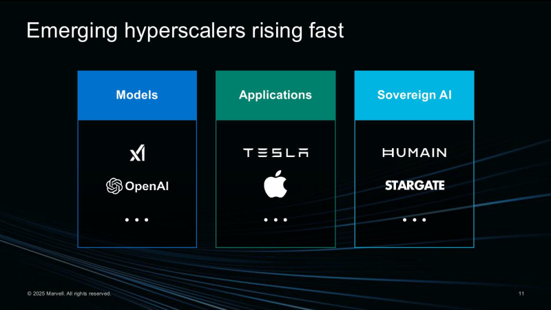 No AI Investor Day 2025, o CEO Matt Murphy destacou o papel crescente da empresa no suporte à infraestrutura de IA, destacando dois desenvolvimentos importantes que moldam o mercado: a ascensão de novos fornecedores de infraestrutura de IA fora dos quatro principais hiperescaladores tradicionais e a rápida ascensão dos componentes XPU Attach como uma nova categoria significativa de semicondutores personalizados. Murphy observou que essas tendências estão contribuindo para um mercado total endereçável muito maior e mais diversificado do que o projetado anteriormente.