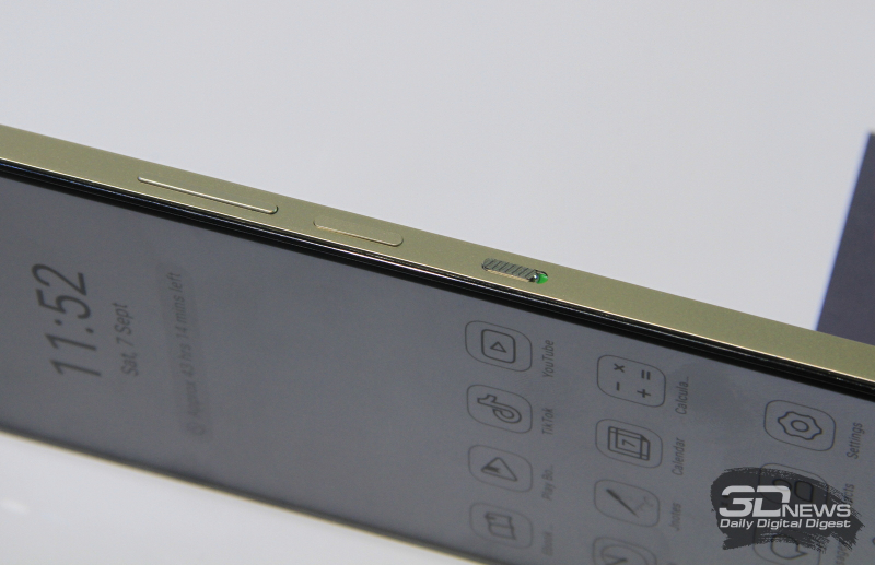 Uma característica distintiva interessante dos smartphones TCL 50 Pro NxtPaper 5G e 50 NxtPaper 5G, bem como do tablet NxtPaper 14, é um interruptor físico no painel lateral, que permite alterar rapidamente os modos de exibição nos monitores. No tablet, você pode selecionar o modo Regular padrão, no qual a imagem não difere de uma tela LCD normal; no modo Papel Colorido, é simulada uma exibição utilizando tinta eletrônica colorida; O modo Tinta Papel simula uma tela em preto e branco usando tinta eletrônica. Por sua vez, os smartphones oferecem os três modos a seguir: Color Paper padrão colorido, Ink Paper preto e branco, além do Max Ink “super preto e branco”, que não só fornece uma imagem totalmente monocromática, como um display E Ink, mas também desativa as notificações para que o usuário não se distraia durante a leitura.