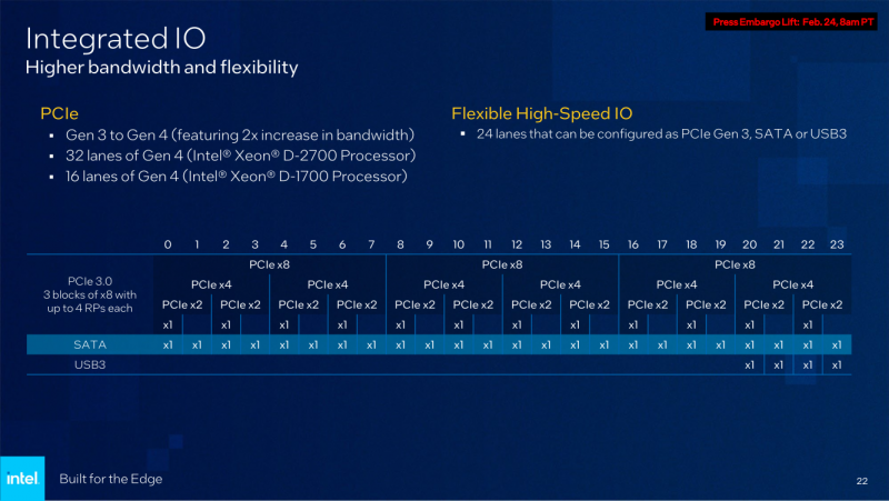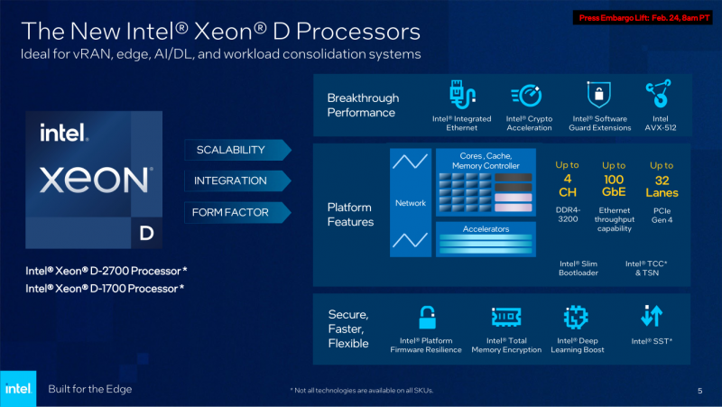 O anúncio parece muito oportuno, pois a Intel estima que mais de 50% de todos os dados serão processados fora dos data centers tradicionais até 2025. A nova série de processadores Xeon D-1700 e D-2700 tem uma série de recursos que estão em demanda especificamente na periferia – especialmente na periferia da nova geração.