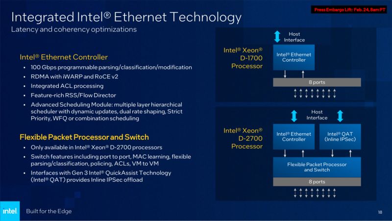 - Switch integrado e manipulador de pacotes para Xeon D-2700;