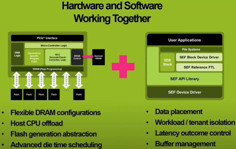 Apesar do fato de que o próprio controlador de SSD na maioria das vezes funciona de forma transparente para o sistema operacional, hipervisores e software, esta arquitetura tem desvantagens suficientes: em primeiro lugar, a natureza de trabalhar com uma matriz de flash é limitada pelo firmware do fabricante e nem sempre é ideal para vários tipos de cargas; em segundo lugar, os processadores e DPUs modernos são várias ordens de magnitude mais poderosos e um controlador SSD pode se tornar um gargalo.