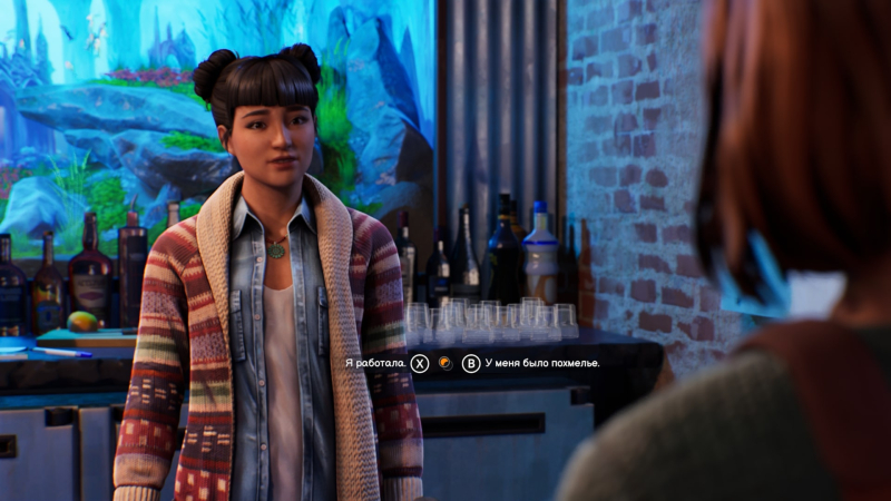 Por causa disso, a jogabilidade como um todo deixa uma impressão mista. Existem muito poucos quebra-cabeças e situações interessantes – a mesma transferência de objetos de um mundo para outro é muito rara, e os “chips” de jogabilidade mais interessantes estão apenas nos primeiros episódios, depois são esquecidos. O resto é andar, falar, andar e falar de novo. As conversas não são chatas, mas às vezes se tornam um pouco chatas – tanto que você começa a se distrair com outra coisa e percebe que não perdeu aquela coisa tão importante. Isso é especialmente prejudicado no terceiro episódio, onde você parece estar imerso na investigação, mas de repente os roteiristas correm na outra direção e lançam duas linhas de amor ao mesmo tempo, dedicando a maior parte do tempo a elas.