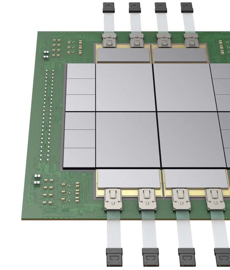 O M1000 de 4.000 mm²+ é um interpositor fotônico ativo multi-mesh que permite aos clientes criar suas próprias interconexões personalizadas usando fotônica de silício, fornecendo conectividade a várias GPUs em um único pacote 3D.