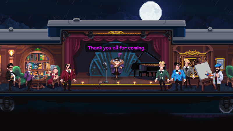 Existem paralelos óbvios com “Assassinato no Expresso do Oriente” – ambos os romances policiais foram escritos nos anos trinta do século passado, e aqui o tempo de ação é exatamente o mesmo. A era emerge inequivocamente mesmo através dos lindos gráficos de pixel: chapéus com penas, vestidos de noite justos para mulheres, camisas e coletes brancos para homens e, claro, penteados interessantes – especialmente o exuberante topete do advogado Arthur. A música também é apropriada – se você gosta da trilha sonora da primeira Máfia, então vai gostar da maioria das composições aqui.