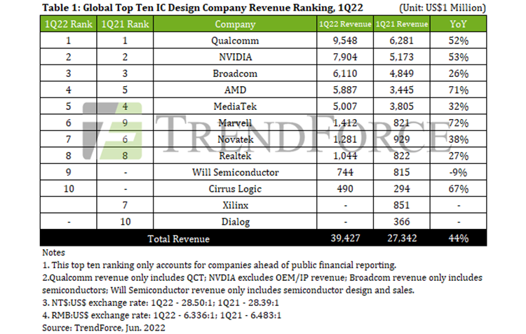 AMD, NVIDIA e Qualcomm são os fabricantes de chips mais conhecidos entre os não fabricantes, pois seus chips podem ser encontrados em tudo, desde supercomputadores de última geração até dispositivos móveis. Devido à crescente demanda por serviços de computação, essas três empresas conseguiram aumentar significativamente suas receitas recentemente, embora, ao que parece, estejam perdendo crescimento em relação a outro designer de chips, a Marvell Technology.