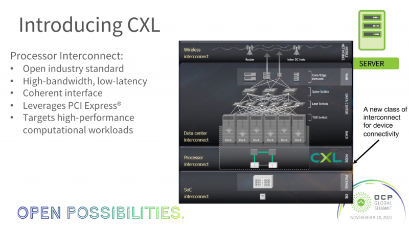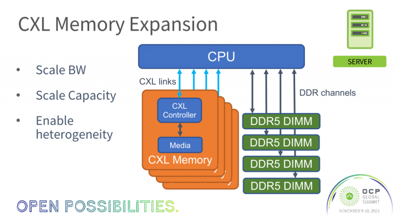 No SC21, o consórcio CXL não só anunciou a aquisição de todos os empreendimentos Gen-Z, mas também apresentou várias demos de vários membros do consórcio. Um dos mais interessantes foi a demonstração de um protótipo de servidor com memória CXL da Meta (antigo Facebook). Um relatório sobre isso foi feito no OCP Global Summit, mas o vídeo de demonstração tornou-se público apenas esta semana.