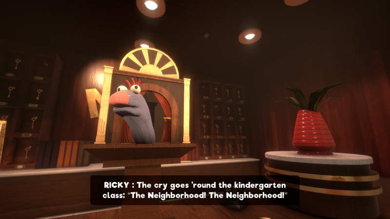 O próximo evento misterioso será conhecer Riki – uma verdadeira meia falante com olhos colados. Ele é bastante amigável e você pode até conversar com ele de coração a coração. O que não se pode dizer sobre os demais habitantes do sítio Bairro Amigo. As bonecas, previamente filmadas em cenas gentis e instrutivas, estão tentando literalmente abraçar Gordon até a morte.