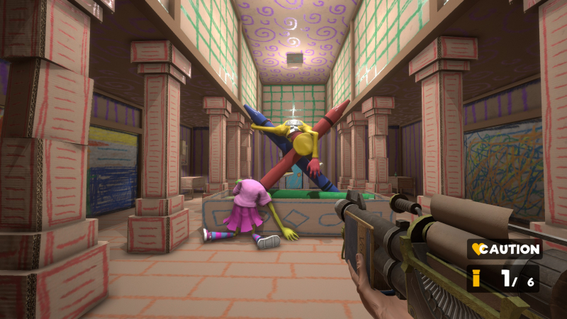 A mecânica do jogo é, de fato, bem pequena. Como atirador, oferece as ações mais básicas: Gordon corre e atira em bonecos até derrubá-los. E é isso. Sem aumentos de resistência, ocultação de sombra ou últimos golpes. Nem tiro certeiro. A arma, aliás, combina com o mundo ao seu redor – ela atira com letras. Uma pistola – uma de cada vez e uma espingarda – toda a cartilha. As letras voam das carcaças de pelúcia de uma forma muito engraçada.