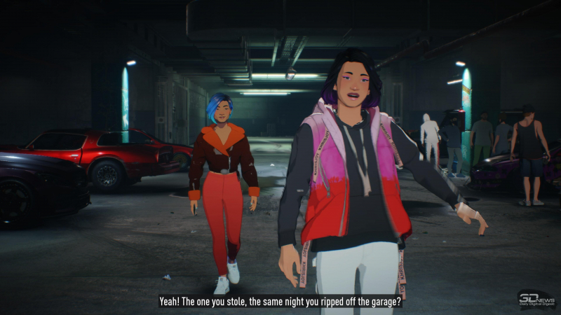 Bem, provavelmente vale a pena dizer algumas palavras sobre o enredo, embora você não espere uma história marcante há muito tempo de Need for Speed. Ela não é boa nem má. A história padrão sobre um piloto que está tentando provar algo para alguém parece um pouco mais atual do que o normal em Unbound devido ao estilo visual, e você nem quer pular os vídeos. Mas o número proibitivo de diálogos durante as viagens é um pouco cansativo, principalmente por causa dos incansáveis ”brincalhões” com diarreia verbal. Os personagens estão prontos para discutir qualquer coisa, de anime a animais de estimação, e nem sempre é interessante ouvir. Bem, sem citações de “Velozes e Furiosos” não foi feito. Mas em geral os personagens não são repulsivos, e isso já é o suficiente para a série.