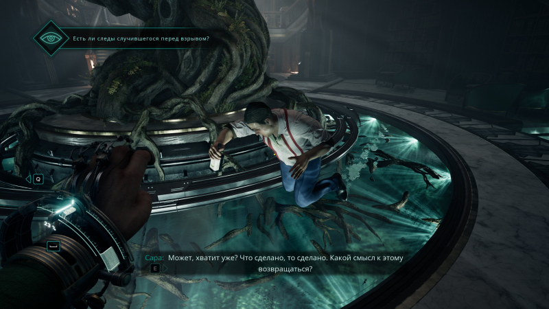 A principal ferramenta do detetive é uma luva de reconstrução, cujo princípio é muito semelhante às habilidades do andróide Connor de Detroit: Become Human. Primeiro, na cena do crime, precisamos encontrar uma pista a partir da qual começaremos a desenrolar a cadeia de acontecimentos. A luva exibe uma linha do tempo que permite retroceder e retroceder a cena. O momento que precisa ser examinado com mais detalhes está destacado na escala. Retroceda a imagem até o episódio destacado, vá até o ponto ativo, pressione o botão de interação – James e Sarah tirarão todas as conclusões para você. É quase impossível chegar a um beco sem saída numa investigação.