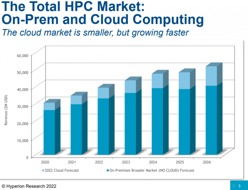 Em geral, o mercado de HPC, do ponto de vista da já mencionada Hyperion Research, tem um futuro positivo. O CAGR de cinco anos (2021-2026) será de 6,4% e o valor total será de US$ 40,4 bilhões. O maior crescimento (CAGR 8,6%) continuará sendo mostrado pelo armazenamento, que está se tornando mais rápido para acompanhar o quantidade de dados. Em particular, para servidores de IA no mesmo período, já está previsto um CAGR de 22%. Um valor ligeiramente inferior apenas para HPC nas nuvens – 17,6%.