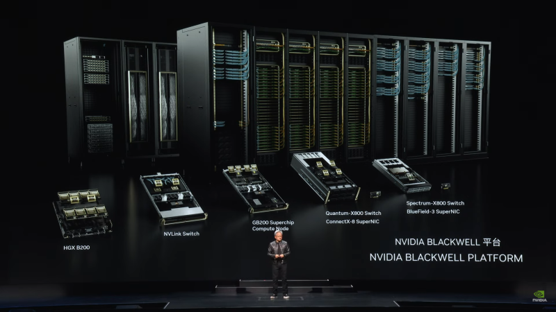 Além disso, a empresa apresentou o acelerador GB200 NVL2, ou seja. uma montagem de dois GB200 combinados com NVLink 5. A NVIDIA também anunciou que a arquitetura modular NVIDIA MGX agora suporta Blackwell, incluindo o GB200 NVL2. No geral, NVIDIA MGX oferece mais de 100 configurações diferentes. Até o momento, mais de 90 servidores baseados em MGX foram lançados ou em desenvolvimento por mais de 25 parceiros NVIDIA, em comparação com 14 sistemas de seis parceiros em 2023. A MGX, em particular, usará pela primeira vez produtos AMD EPYC Turin e chips Intel Xeon 6 (anteriormente Granite Rapids).