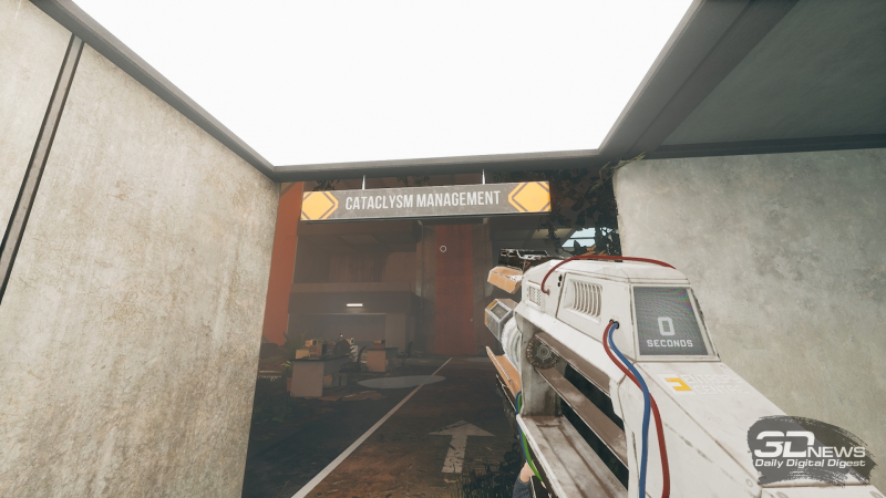 Analogias c Portal (ou sua grande sequência) aparecem quase desde os primeiros segundos do jogo. Há um enorme complexo científico abandonado habitado apenas por representantes da vida sintética (e nós), e cubos como os principais objetos de interação e, é claro, um incrível milagre do pensamento científico à frente do jogo – a arma de entropia. E, no entanto, o Entropy Center tenta não parasitar uma fórmula de sucesso, mas traz muitas de suas próprias ideias para ela.
