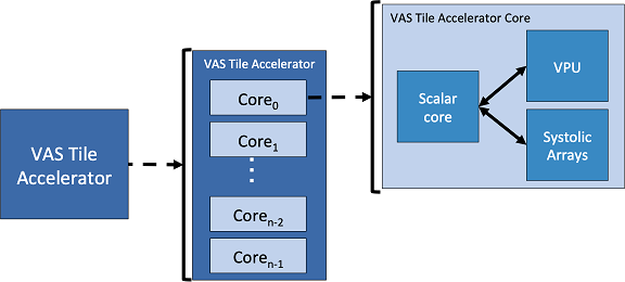 Na verdade, cada módulo VAS é um processador RISC-V multi-core totalmente completo, capaz de trabalhar com todos os formatos de dados modernos, reconhecendo automaticamente instruções avançadas e executando-as utilizando os aceleradores apropriados em sua composição.