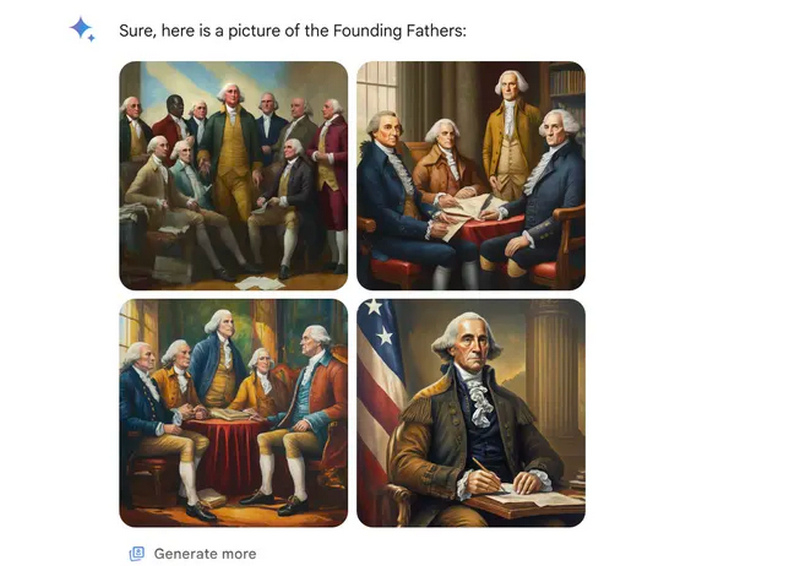 O Google disse que suspendeu parcialmente o gerador de imagens em seu chatbot Gemini depois que foi descoberto que ele continha imagens historicamente imprecisas de pessoas relacionadas a questões raciais. Assim, ao tentar retratar os pais fundadores americanos e os soldados da Alemanha nazista, ela parece subverter os estereótipos raciais e de gênero, o que é considerado uma tentativa de falsificar a história.