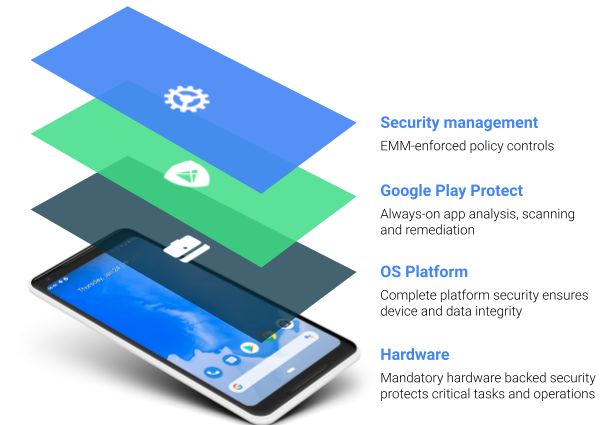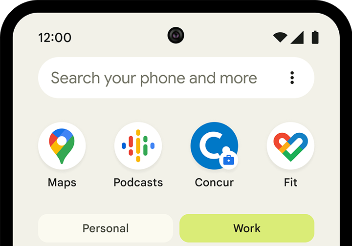 Outros recursos de segurança no Android 12 incluem a capacidade dos administradores de configurar a conectividade Wi-Fi, decidir qual Input Method Editor (IME) usar nos dispositivos, gerenciar a complexidade da senha para proteger dados de trabalho, recuperar logs de perfil corporativo pela rede e etc. Ao mesmo tempo, os funcionários ainda podem usar seu perfil pessoal para necessidades não relacionadas ao trabalho.