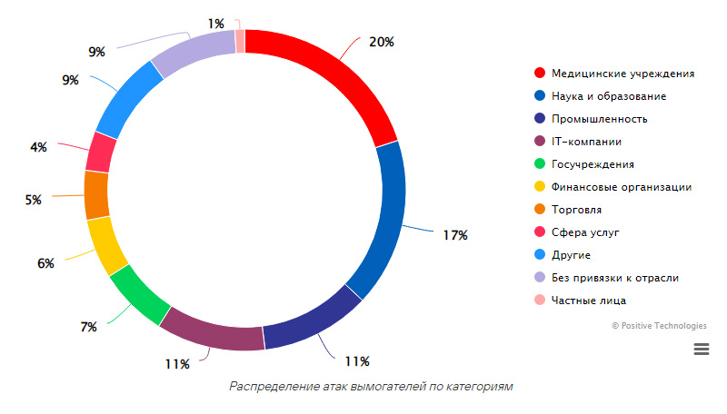 Os especialistas da Positive Technologies registraram um aumento no número de incidentes com uso de ransomware: o número desses ataques no segundo trimestre de 2023 aumentou 13% em relação ao primeiro trimestre do ano e 22% em relação ao resultado do ano passado. Na maioria das vezes, esse malware ataca instituições médicas (20%), bem como organizações científicas e educacionais (17%). As empresas de tecnologia foram responsáveis por 11% do total de vítimas de ransomware, um aumento de 5% em relação ao trimestre anterior.