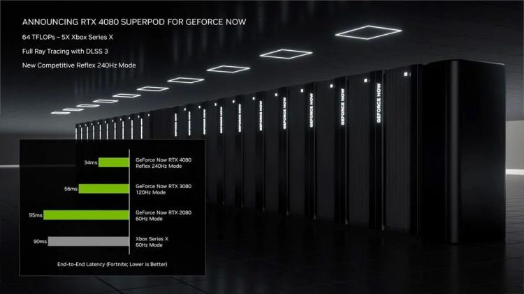 Além de anunciar o desktop GeForce RTX 4070 Ti e as placas gráficas móveis da série GeForce RTX 40, a NVIDIA também anunciou que atualizou seu serviço de streaming de jogos GeForce NOW com sistemas de servidor SuperPOD baseados nas mais recentes placas gráficas GeForce RTX 4080.