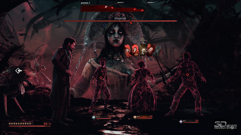 A segunda metade do jogo é sobre batalhas. Novamente, à primeira vista, o sistema de combate está repleto de ideias interessantes. É executado por turnos: na batalha, uma perspectiva isométrica é substituída por um arranjo tático que lembra os Discípulos. Victor pode dar um soco no rosto dele ou atirar com um revólver, ou pedir ajuda aos saudadores reunidos. Você encontrará quatro espíritos na história, mais quatro já são opcionais e são desbloqueados ao completar missões adicionais.
